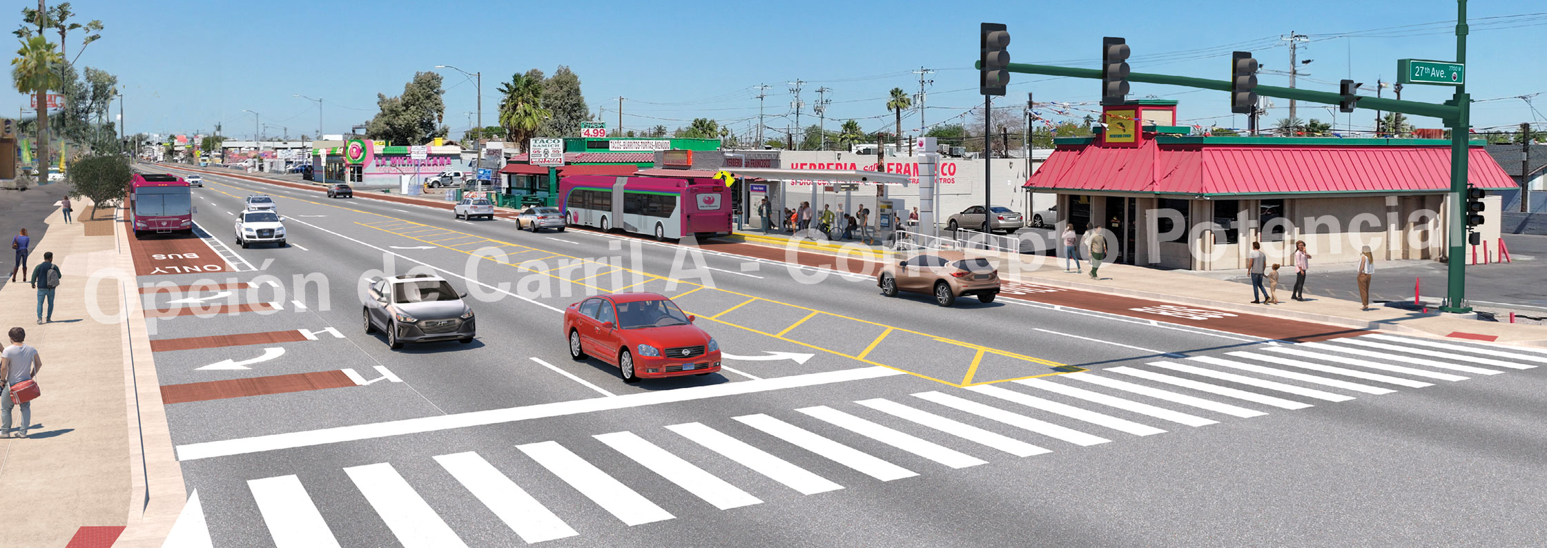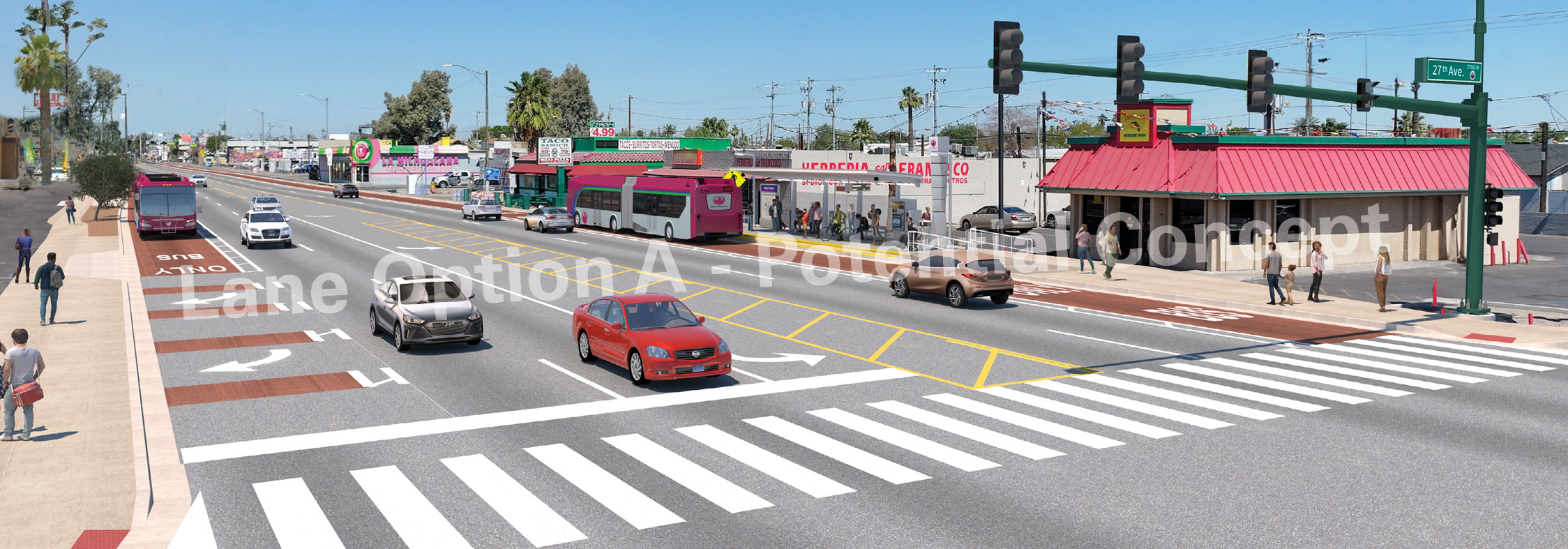 The first corridor has been approved on 35th Avenue and Van Buren Street. In Spring 2025, outreach efforts focused on 35th Avenue between Van Buren Street and Cheryl Drive. Through extensive outreach to community members, council members, and elected officials, center-running BRT was selected for 35th Avenue and 15% design is underway.